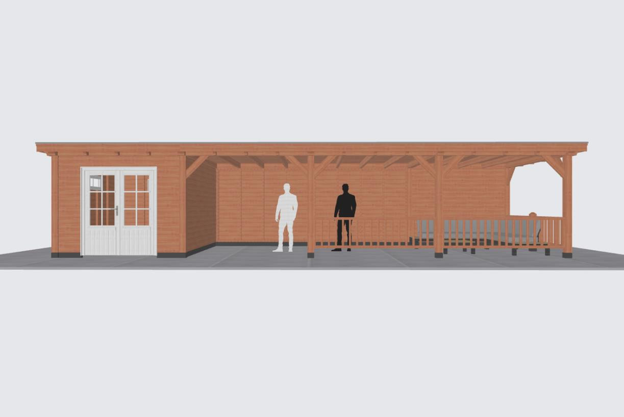 Dit buitenverblijf is als bouwpakket samengesteld en het laten opbouwen door Trendhout is een optie.