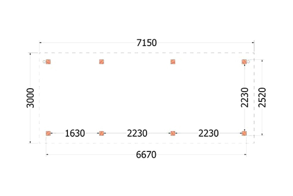 • Dakconstructie: gordingen 65x145mm met overstek 65x145mm