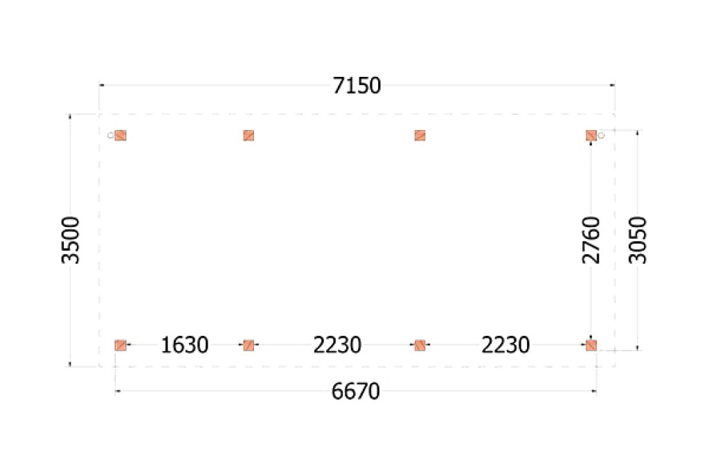 • Dakconstructie: gordingen 65x145mm met overstek 65x145mm