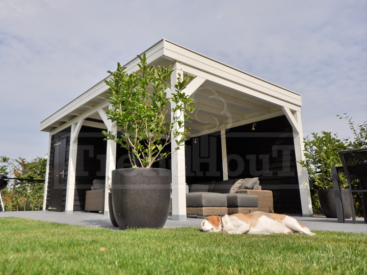 De bijgevoegde overkapping voegt een extra laag functionaliteit toe. Of het nu gaat om een schaduwrijke plek om te ontspannen tijdens zonnige dagen, een plek om buiten te dineren met vrienden en familie, of gewoon een droge plek om te zitten terwijl het regent, de overkapping past zich aan aan jouw wensen.
