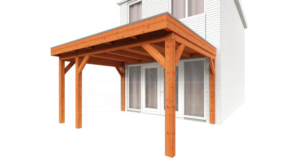 Aanbouwveranda Ancona heeft een strakke vormgeving met aan de voorzijde een overstekend dak. Aan beide zijkanten heeft dit type veranda geen overstek, waardoor deze o.a. uitstekend geschikt is om bijvoorbeeld aan te bouwen bij een tussenwoning. De voorgeboorde schroefgaten kunnen keurig worden afgewerkt met de bijgeleverde houten doken. De constructie is snel te monteren, o.a. door de voorgeboorde