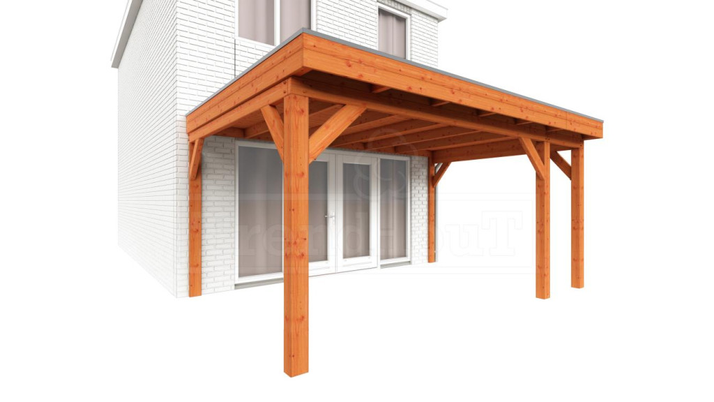 Aanbouwveranda Ancona heeft een strakke vormgeving met aan de voorzijde een overstekend dak. Aan beide zijkanten heeft dit type veranda geen overstek, waardoor deze o.a. uitstekend geschikt is om bijvoorbeeld aan te bouwen bij een tussenwoning. De voorgeboorde schroefgaten kunnen keurig worden afgewerkt met de bijgeleverde houten doken. De constructie is snel te monteren, o.a. door de voorgeboorde