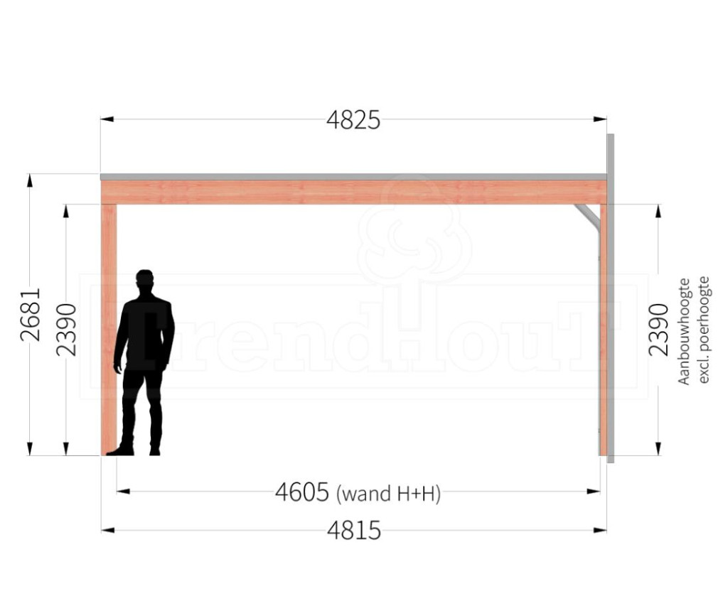 Aanbouwveranda Modena is beschikbaar in drie dieptes en meerdere breedtes. Afwijkende maten zijn op aanvraag mogelijk.